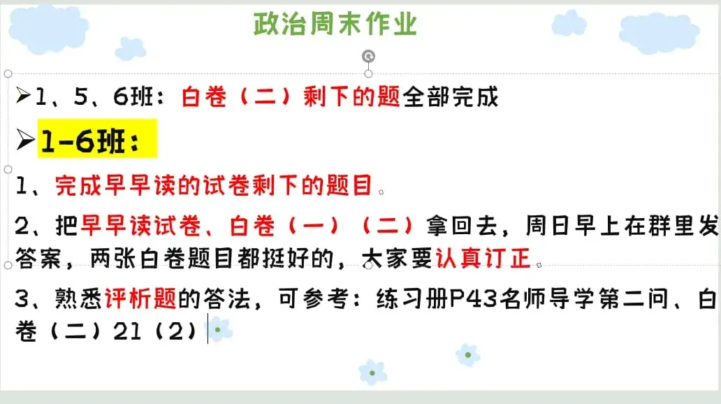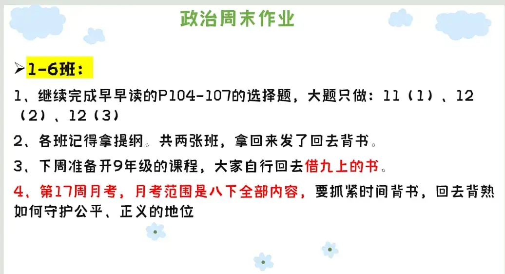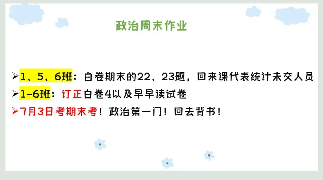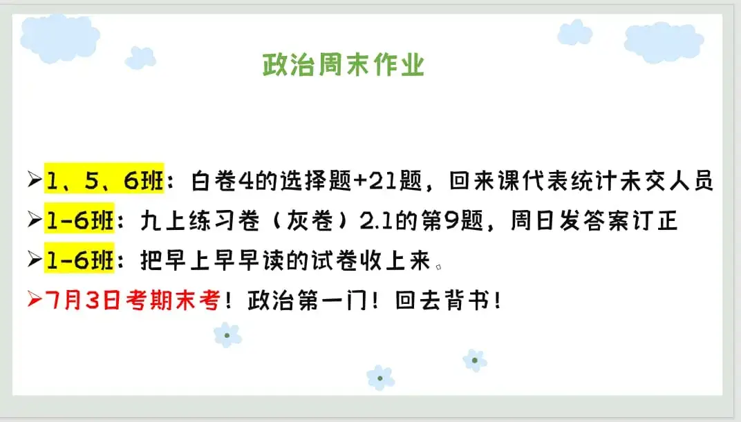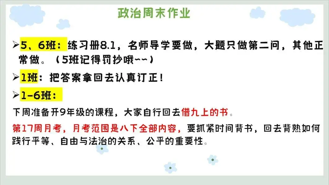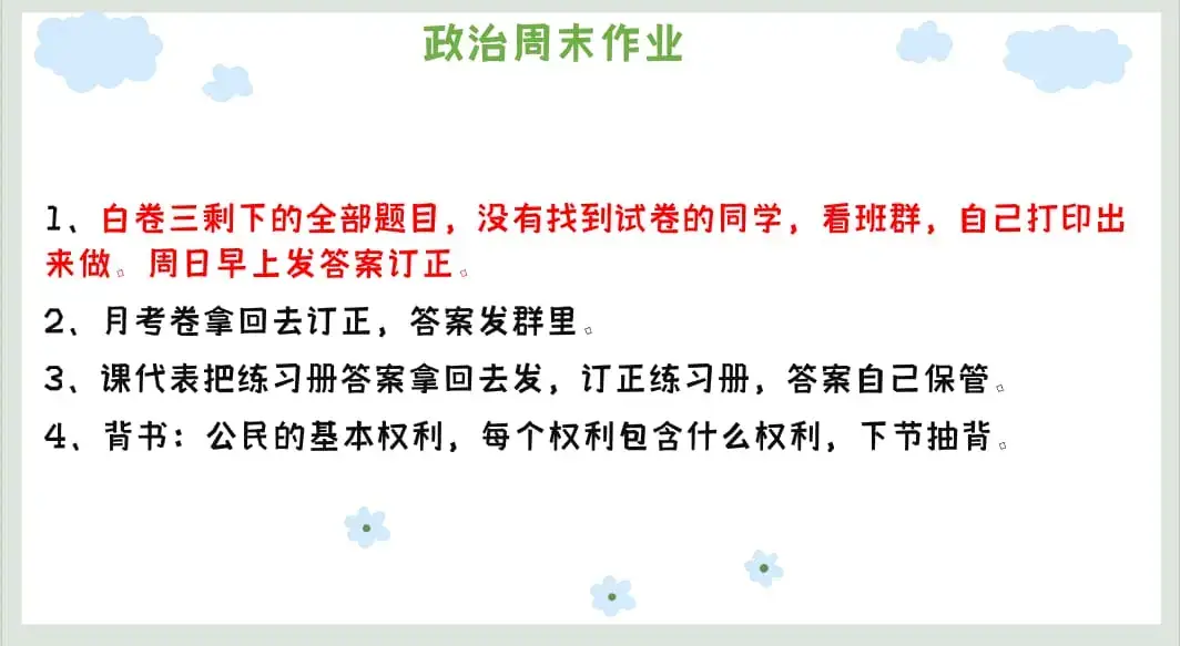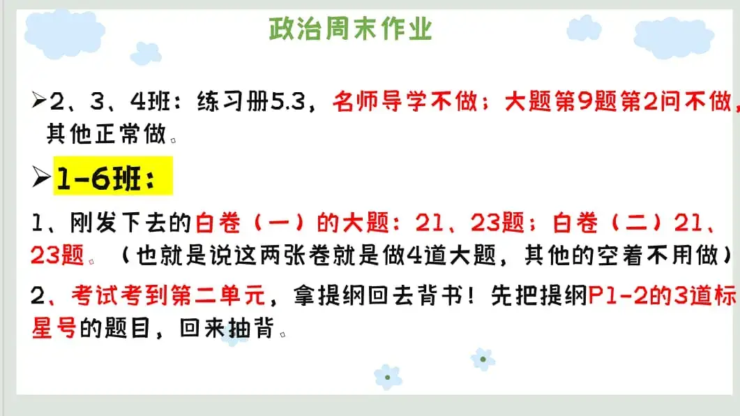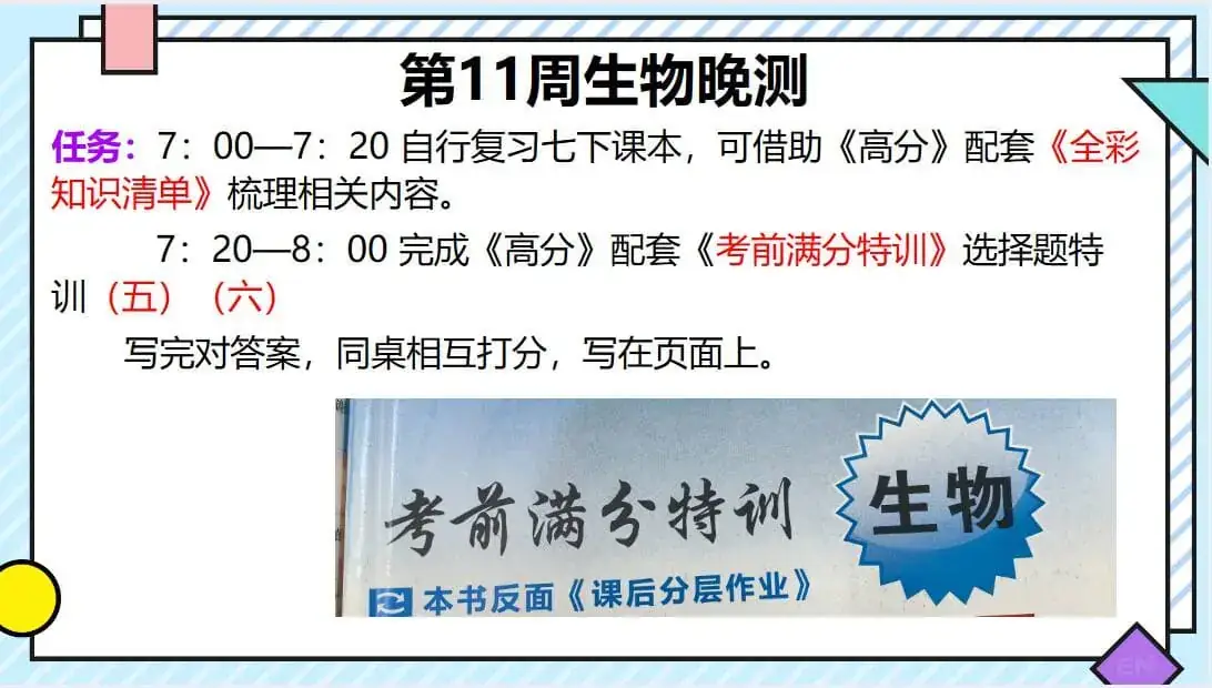 3.下周周日生物周测,一定要按要求来,这个时间不能做其他科作业